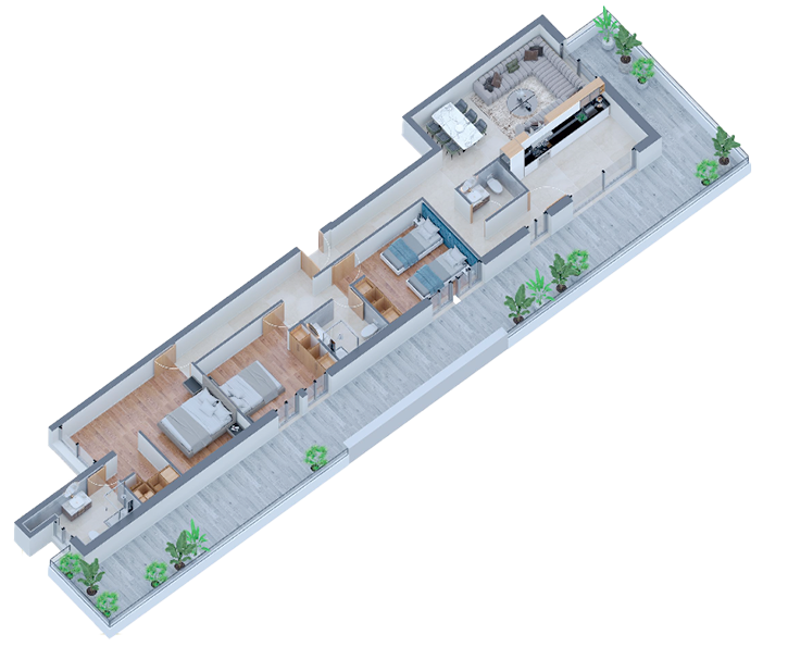 VERLIA Casablanca promet des vues imprenables, depuis les vastes terrasses du projet, donnant sur les belles bâtisses de la résidence, ses nombreux espaces verts et son panorama végétal.